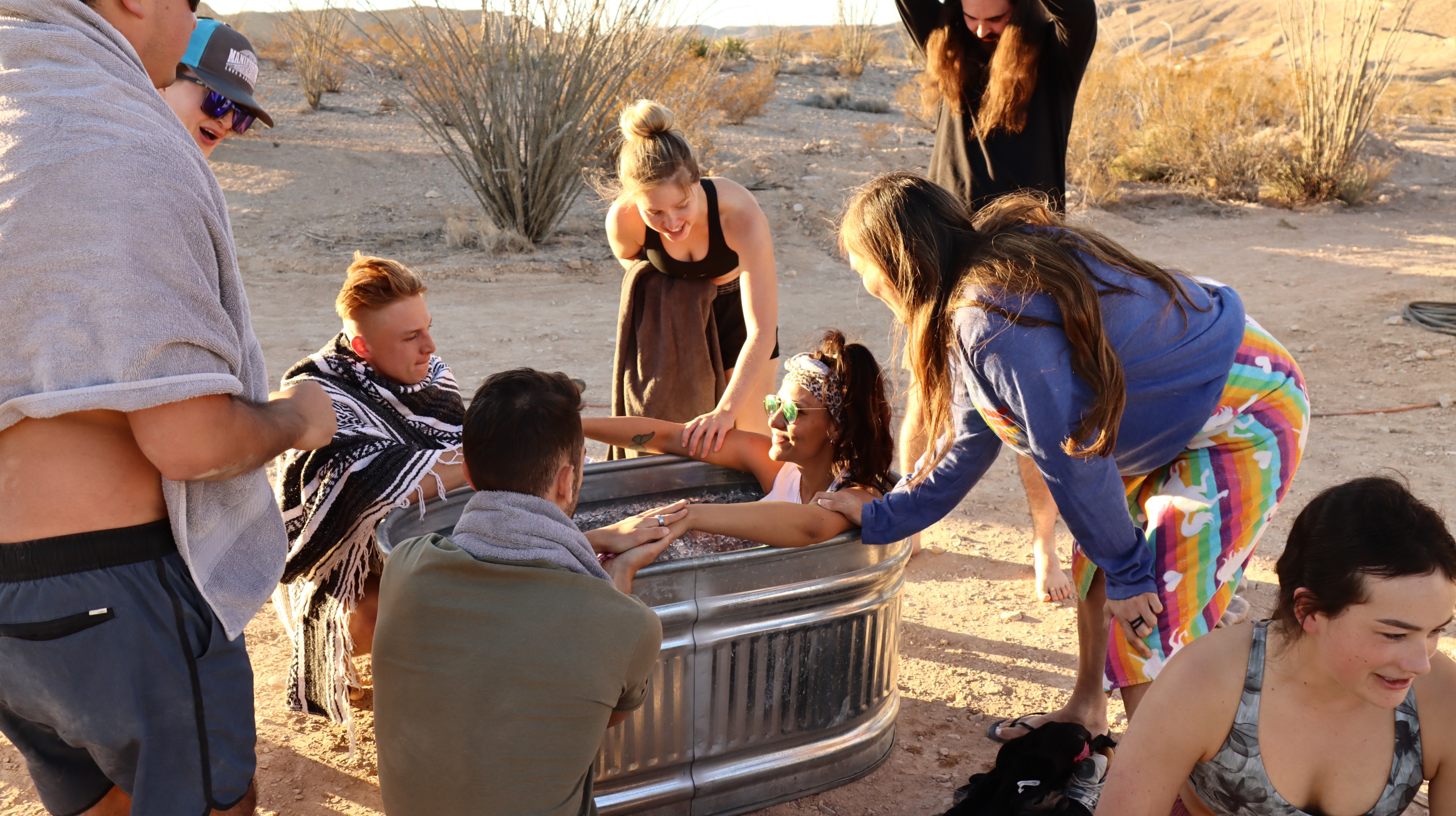Cold Plunges in the healing glacial waters to cleanse, embrace the cold, practice surrender, and lifelong memories of cold plunging with a group of new lifelong friends.
